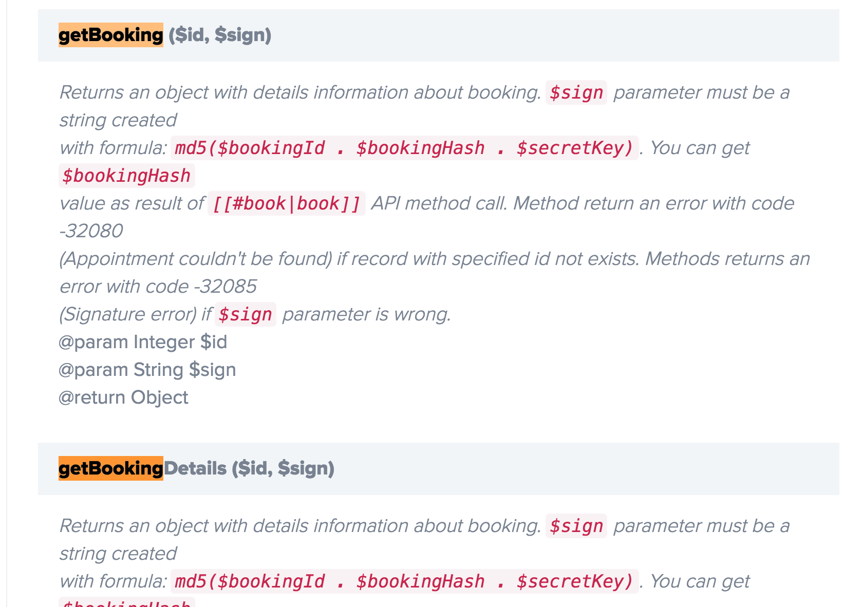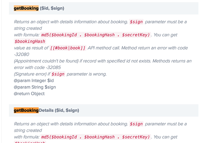 afaikt getBooking fails, that is to say it has precisely the same calling convention as getBookingDetails and yet calling the latter works, wile the former fails
