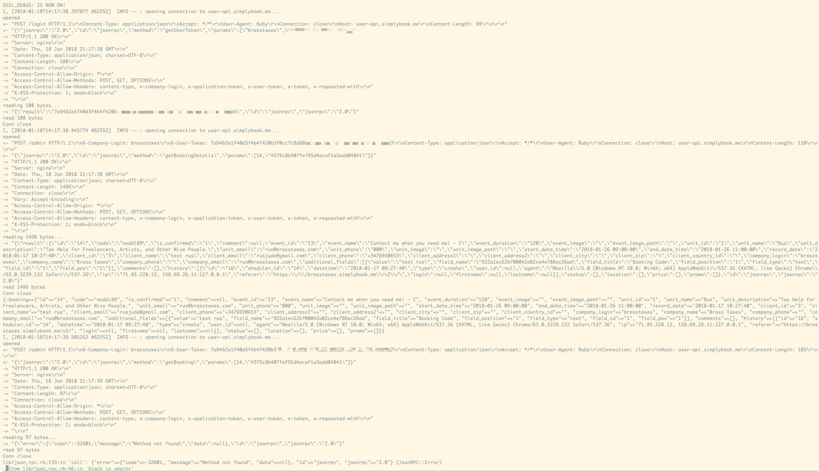 here is some output showing this. in the failed case the only difference is that the method name is different, getBooking vs getBookingDeatils