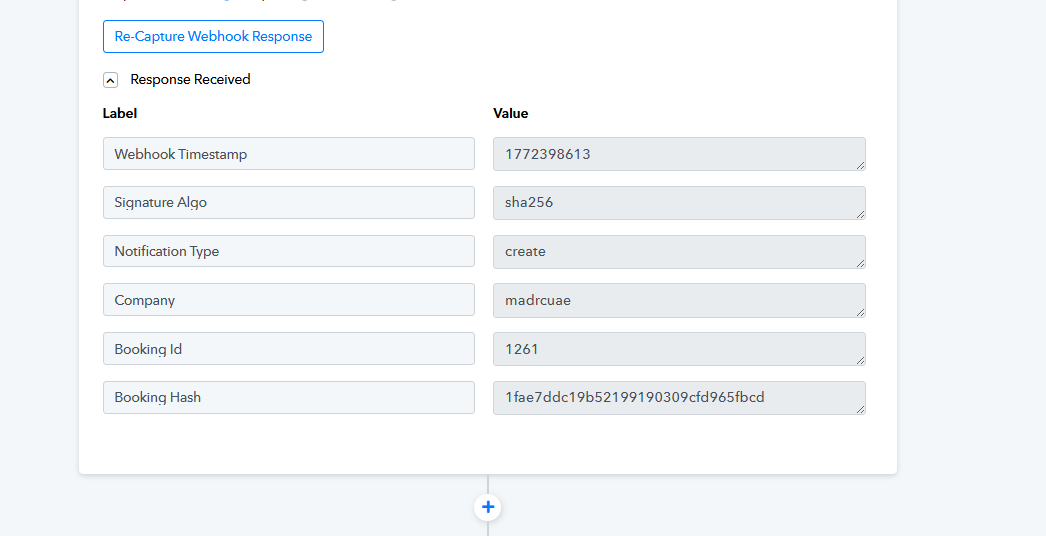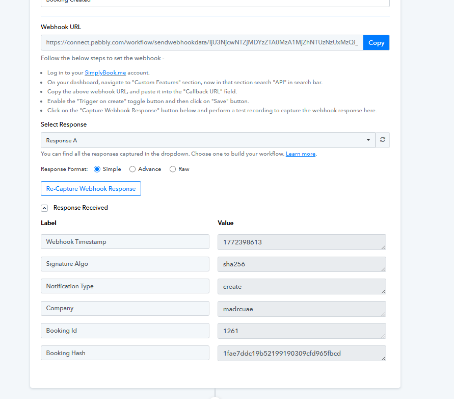 I know you have documentation but why you send every time this documentation even these are not user friendly . Please tell me the booking route like when user create the booking what is the api webhook to get the booking when new booking created . Im using iside pabbly node i dont know end poit they used but im getting ALgo sha256 instead of the md5