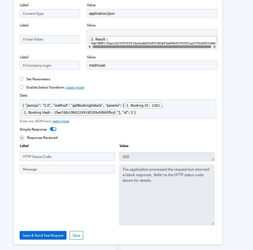 with messge : The application processed the request but returned a blank response. Refer to the HTTP status code above for details.